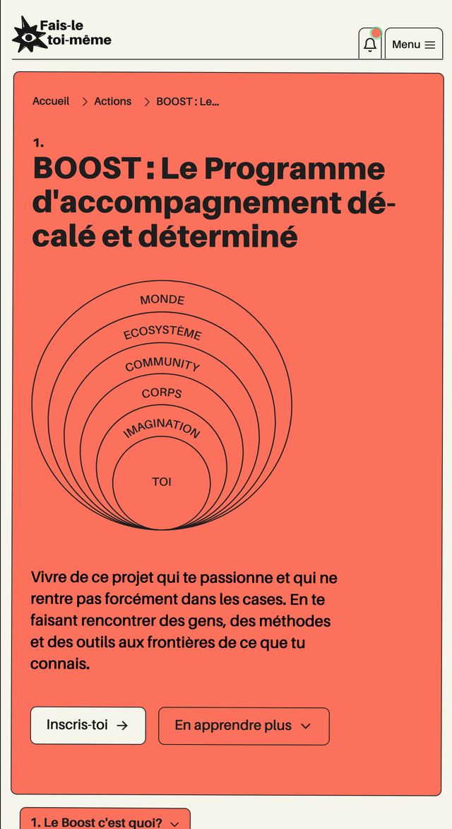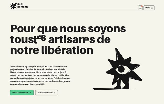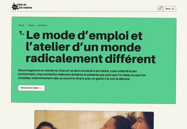 • Home : une entrée en douceur, centrée sur la vision et mission de Fais-le toi-même